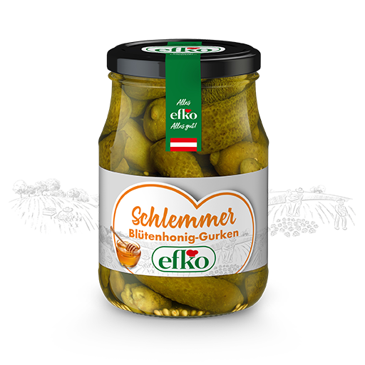 Crisp, small gourmand gherkins with a delicious taste of blossom honey – a supreme pleasure for lovers of spicy gherkins – and a delightful change on your snack table.