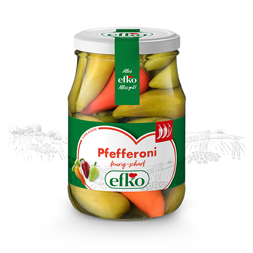 Hot and sweet chilli peppers, pickled in a subtle marinade – especially popular as an accompaniment for snacks and for cold buffets. For those who like it spicy.