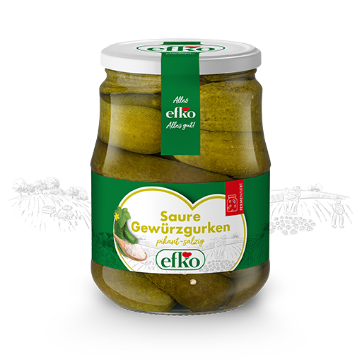 Crispy fresh gherkins pickled in a sweet-and-sour vinegar marinade with subtle spices. Ideal as an accompaniment for snacks and also for garnishing a buffet or cold cuts.