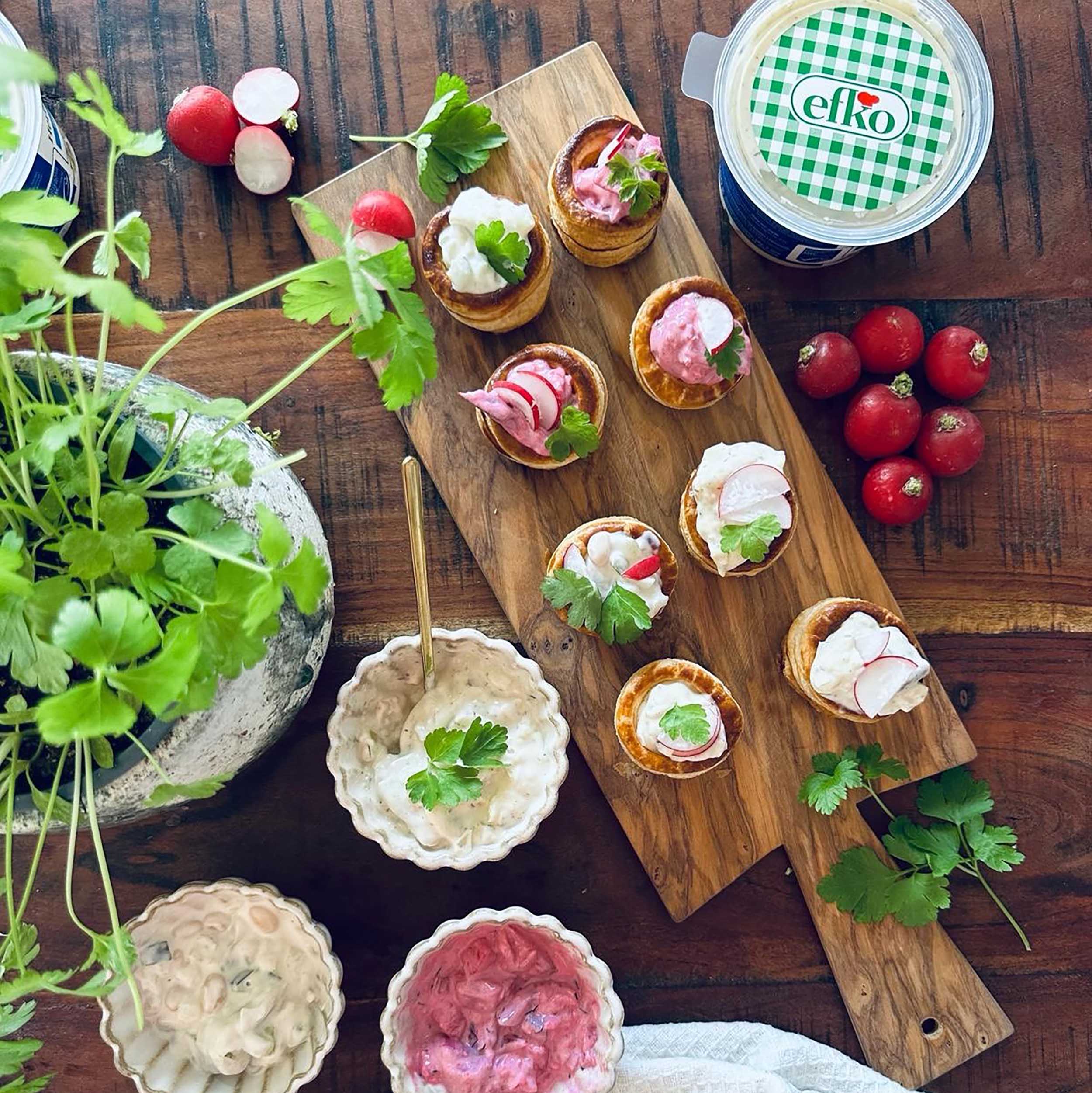 Nach dem Auskühlen die Pasteten mit Hering Salat füllen und nach Lust und Laune dekorieren.