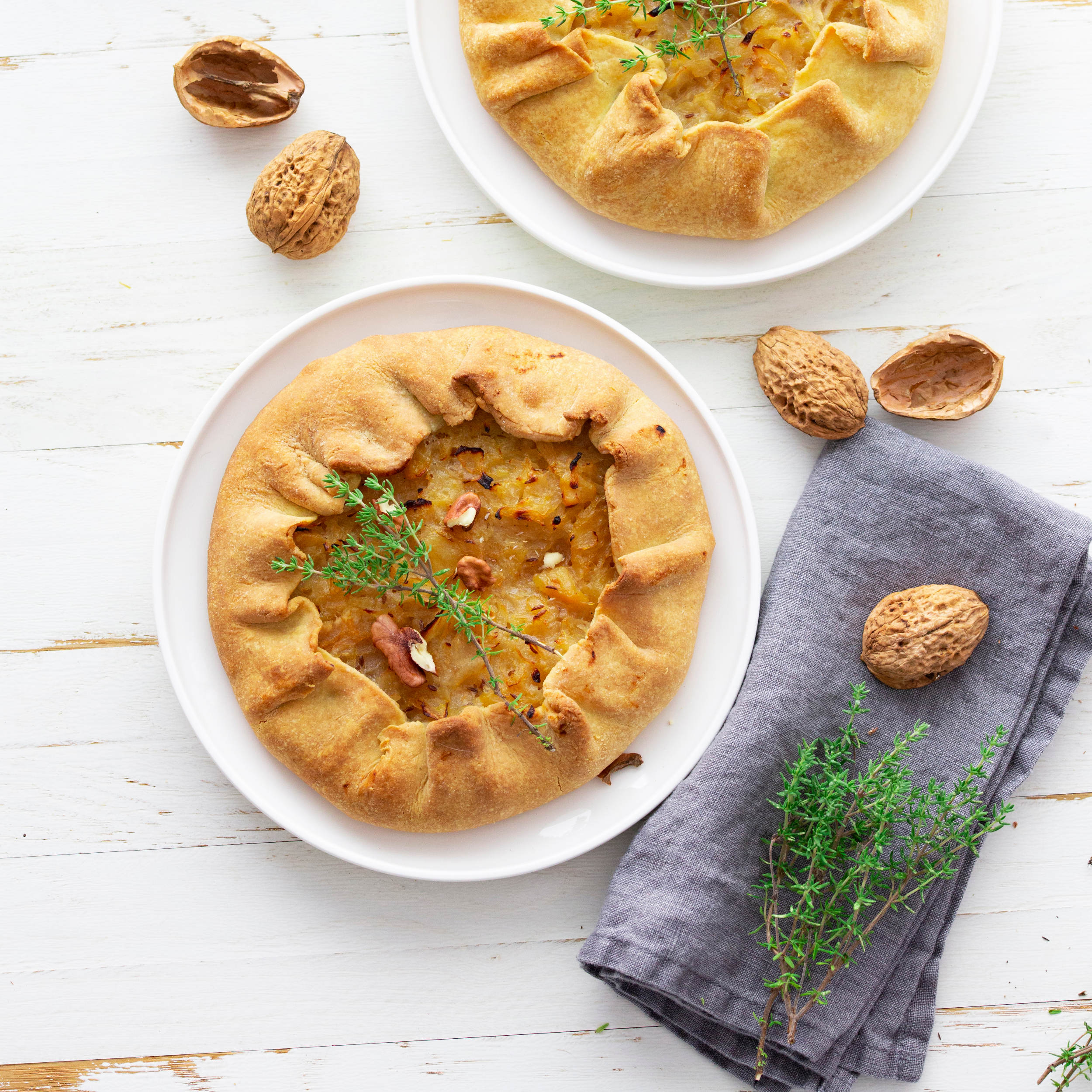 Die Kraut-Birnen-Galettes auf ein Backblech mit Backpapier legen und ca. 30 Minuten goldgelb backen. Danach aus dem Backofen nehmen und vor dem Servieren mit Walnüssen, Thymian und Kapuzinerkresse garnieren.