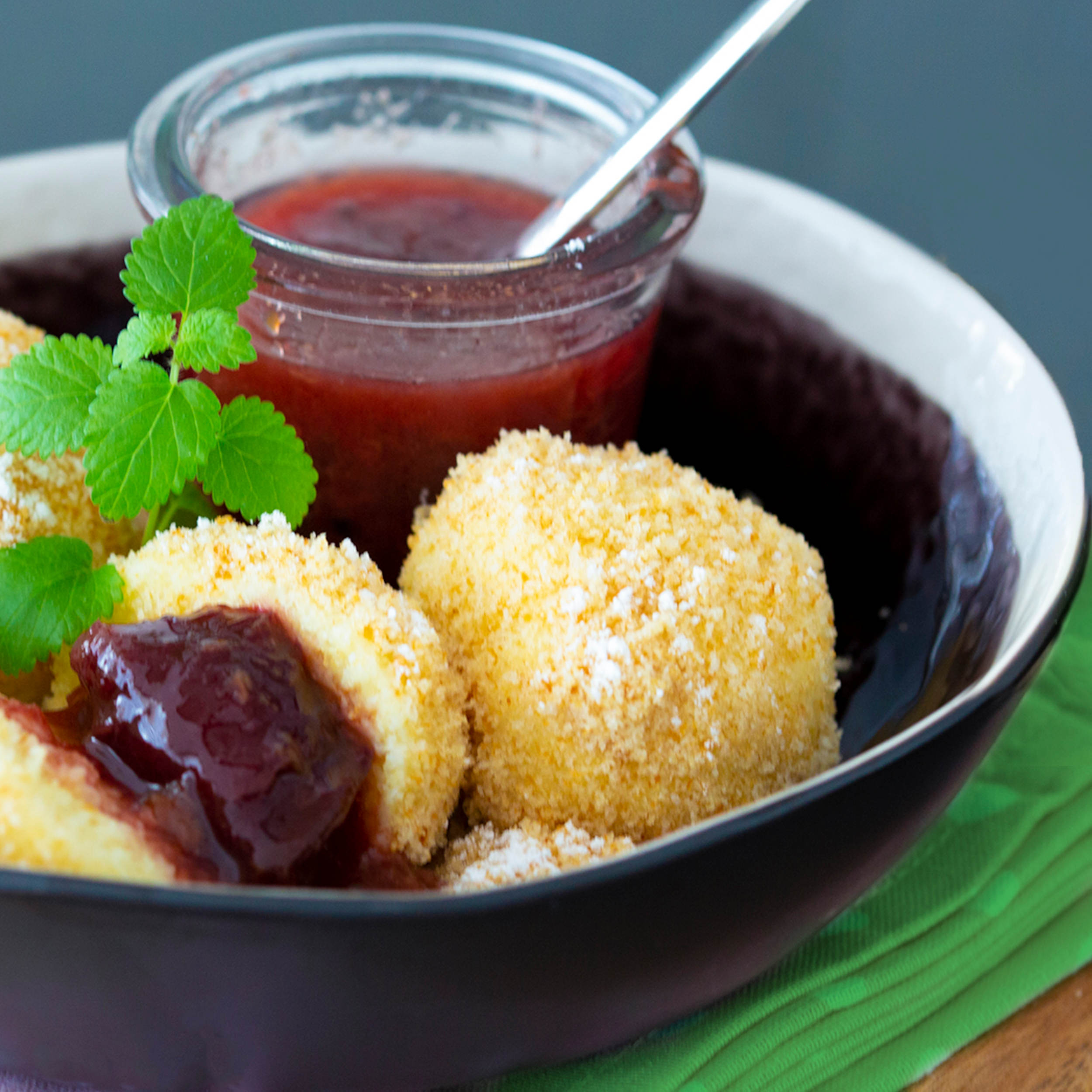 Aus dem Teig 10 Knödel formen und im heißen Salzwasser circa 10 Minuten sieden. Für die Brösel 200g Semmelbrösel in 50g zerlassener Butter rösten. Die Knödel aus dem Wasser abseihen und in den Bröseln wenden.